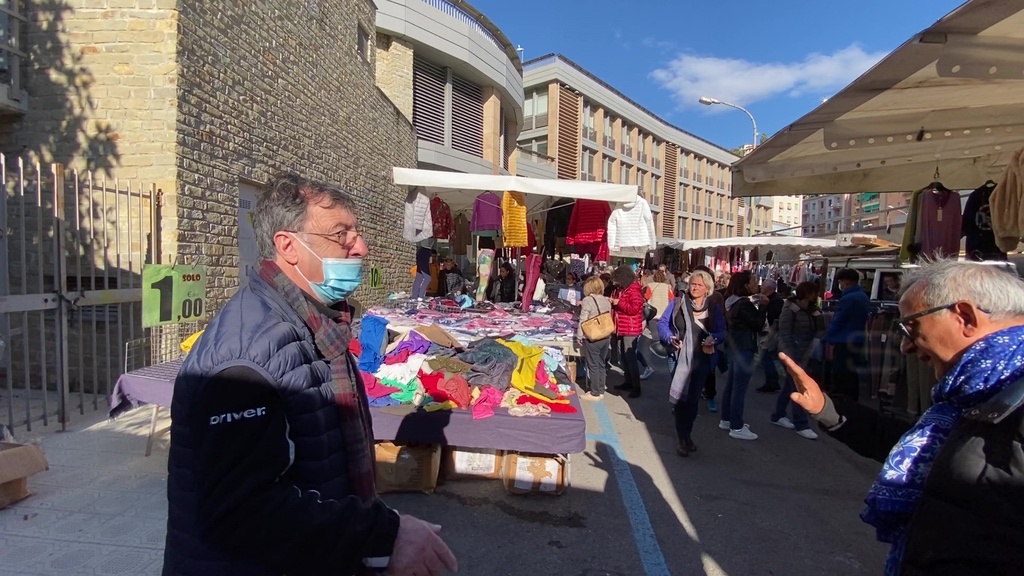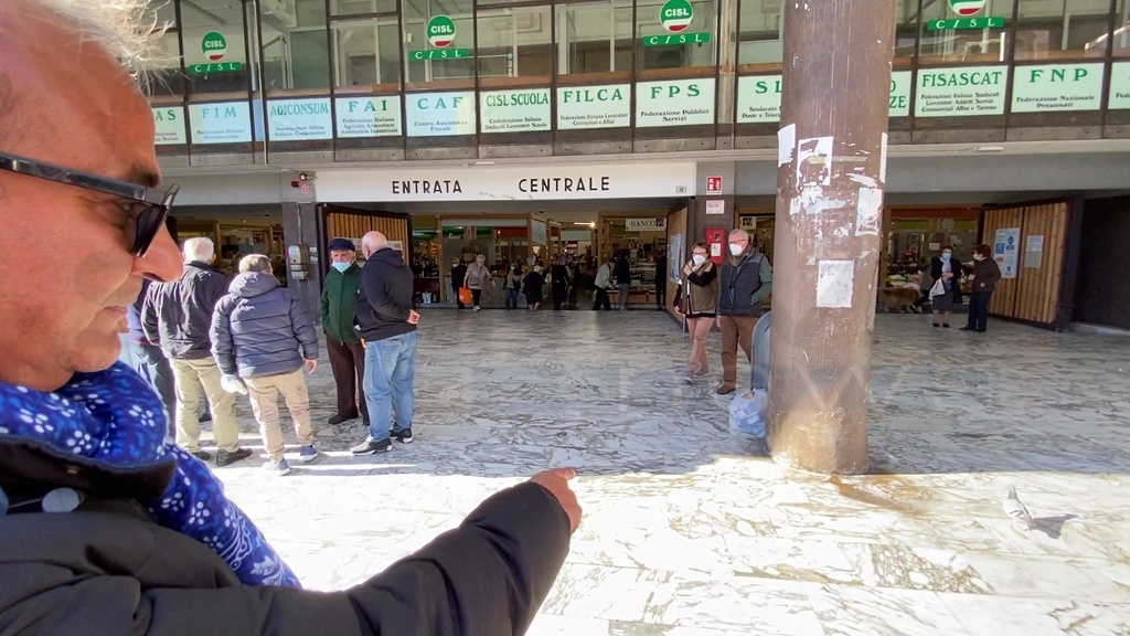 Roberto, conosciuto come 'l'egiziano' storico commerciante ambulante questa mattina anziché posizionare le plance con sopra la merce ha affisso un cartello: 'Sciopero per danni subiti, causa spostamenti coatti'.