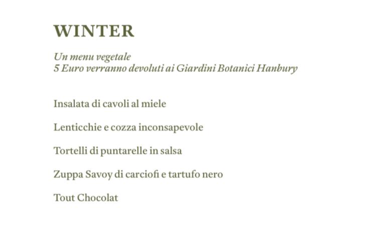 Si chiama 'Winter' ed è un menù a base vegetale, quello concepito dal talentuoso chef ventimigliese Diego Pani, che farà del bene a quel meraviglioso patrimonio presente sul territorio che sono i giardini botanici Hanbury.