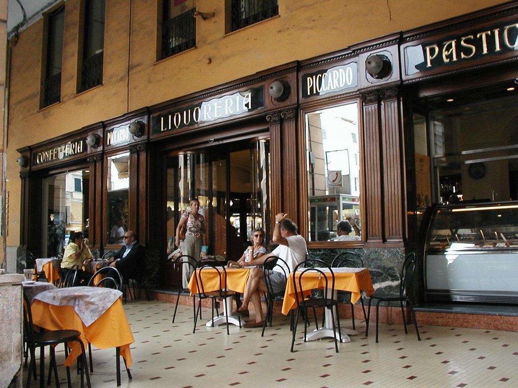 Il caffè 'Piccardo' divenne, e rimane ancora oggi, una vera e propria 'istituzione' dove venivano prese decisioni politiche, di affari ed economia internazionale tra note di caffè e il profumo dei dolci come coreografia. Qui venne installato il primo telefono della città e collocata una delle prime televisioni: darsi appuntamento da Piccardo allora, come oggi rappresentava un rito. Un ritrovo per uomini d'affari, scrittori, poeti, come Italo Calvino, musicisti - e tra questi Luciano Berio, ma anche di tutti gli imperiesi. Il locale e i suoi mobili in stile umbertiano sono stati testimoni di storie particolari, al limite fra il manoscritto di un libro e la realtà. Il suo caffè venne gustato dal presidente della Repubblica Sandro Pertini, ma anche da Fausto Coppi, il 19 marzo del 1946 che, in vantaggio sugli avversari della Milano-Sanremo, si fermò a prenderlo 'in volata'. Fu anche il 'rifugio' di una delle coppie più romantiche e travagliate dello spettacolo, in fuga da una tempesta che minacciava il loro yacht: Elizabeth Taylor e Richard Burton.