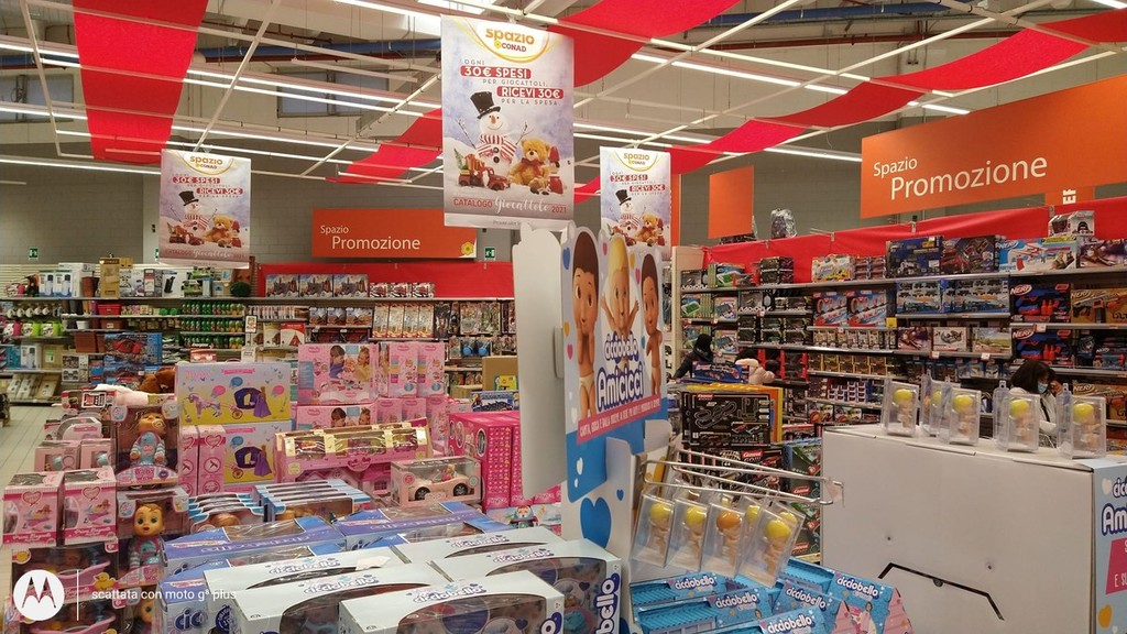 I buoni Giocattolo hanno un meccanismo molto semplice: Fino al 6 gennaio 2022 per ogni acquisto nel reparto “Giocattoli” del valore minimo di 30€ i clienti riceveranno tre buoni da 10€, spendibili nello stesso punto vendita a fronte di una spesa minima di 50€! Inoltre con l’iniziativa Scegli&Sconta facendo la spesa fino al 30 NOVEMBRE 2021, i clienti riceveranno direttamente in cassa 3 COUPON SCEGLI&SCONTA. Fino all’8 dicembre 2021, presentando in cassa i 3 coupon ricevuti i clienti avranno uno sconto del 30% sull’acquisto di 3 giocattoli. Ma i vantaggi non finiscono qui. I buoni sono infatti cumulabili e potranno essere utilizzati sulla totalità della spesa per tutto il periodo stabilito: sempre uno ogni 50€ di spesa. Tutti i giocattoli partecipano all’iniziativa.