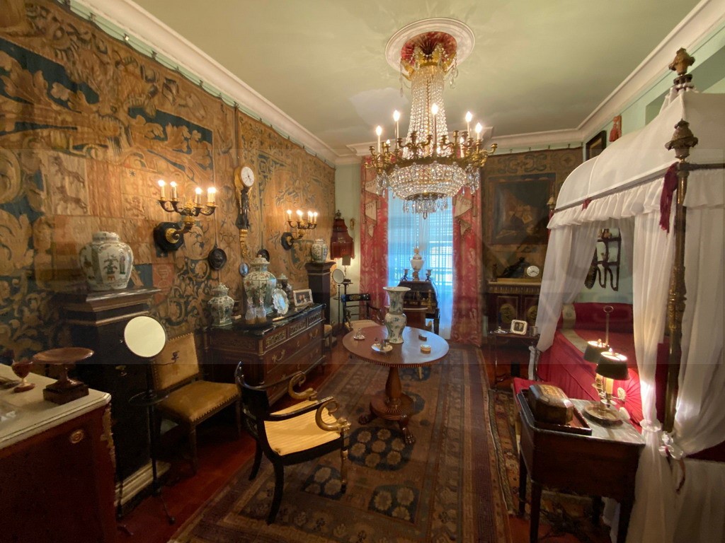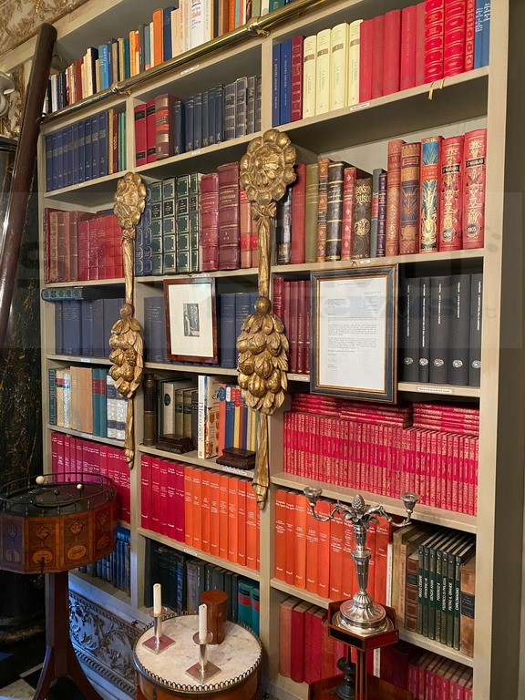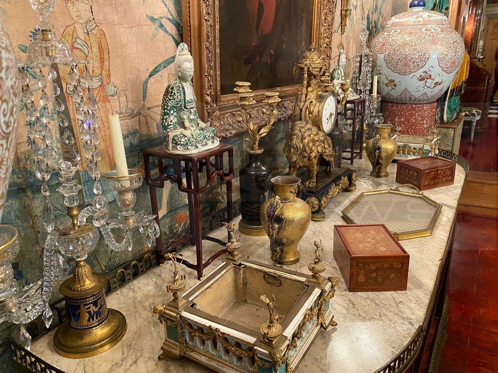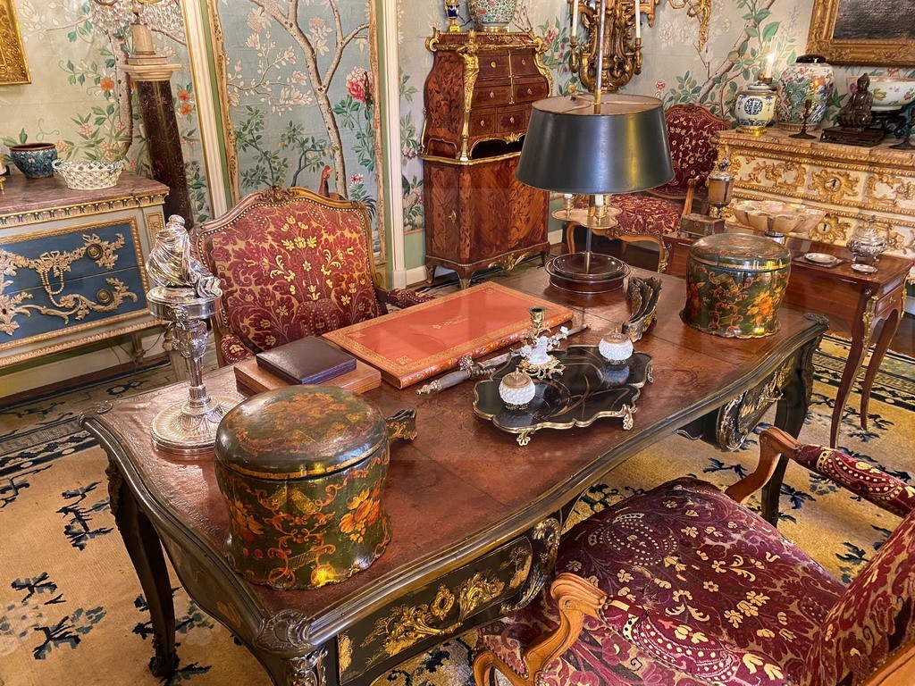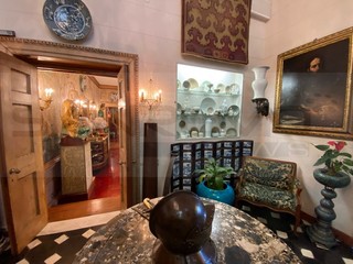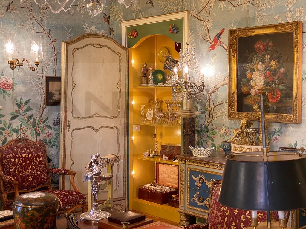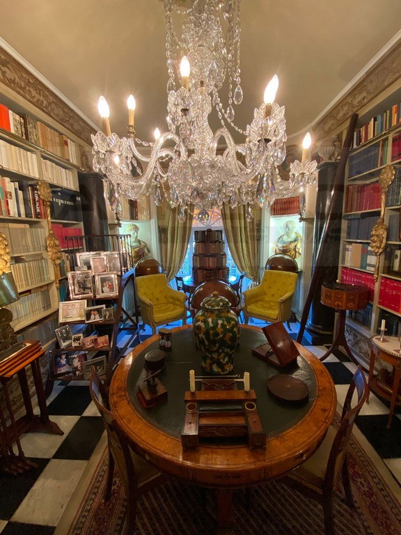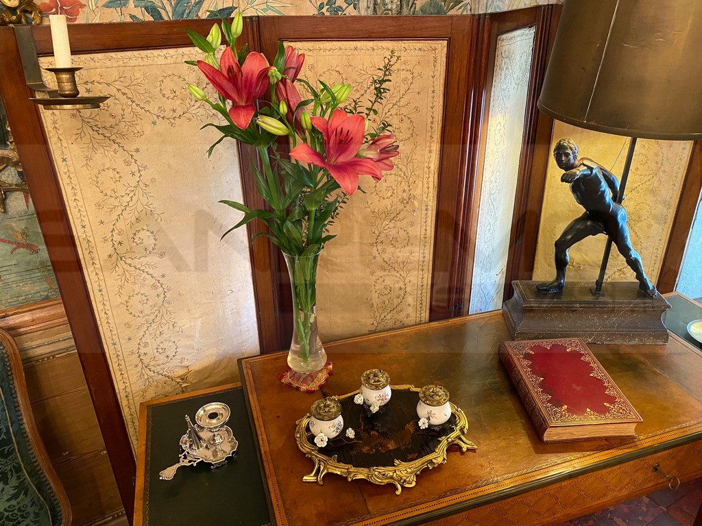 A Villa San Luca, poi, basta aprire gli sportelli di un mobile per imbattersi in oggetti curiosi e rari, come il raffinatissimo calamaio portatile della seconda metà del XVIII secolo, interamente snodabile e ancora dotato della sua custodia in marocchino tinto, proveniente dalla collezione Hamilton e presumibilmente dono del re di Napoli all’ambasciatore britannico Sir William Hamilton.
