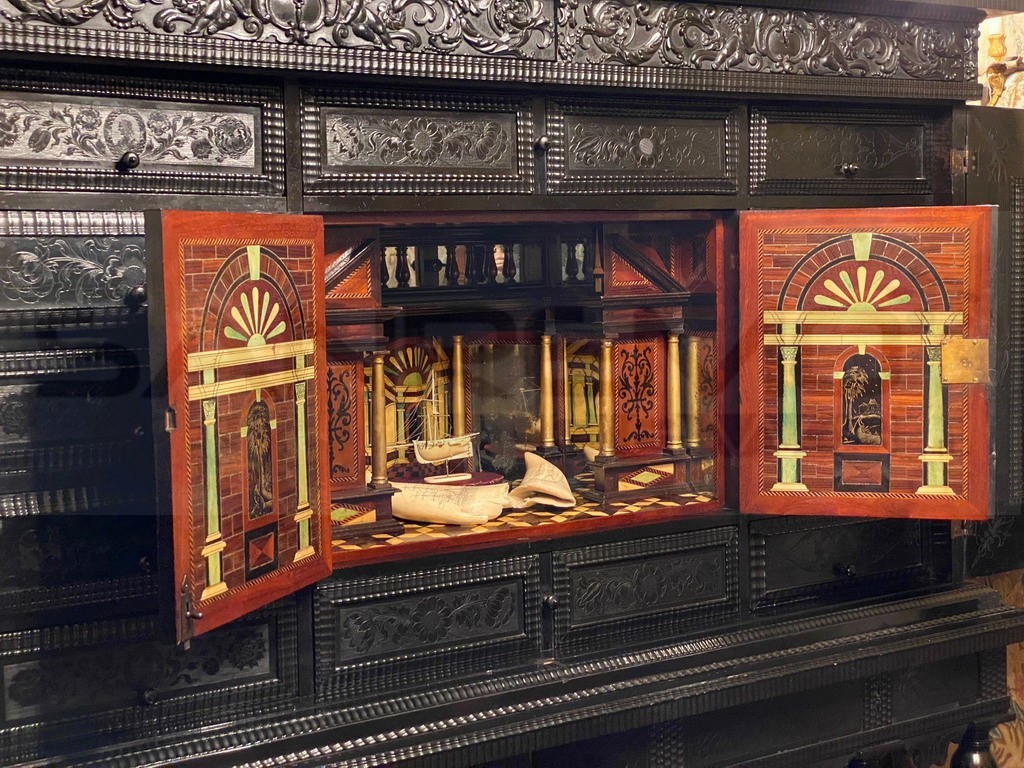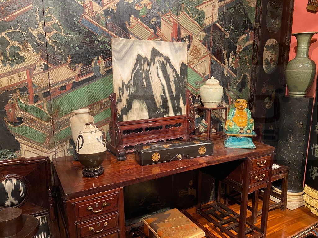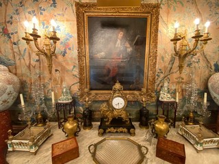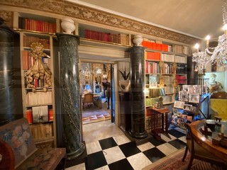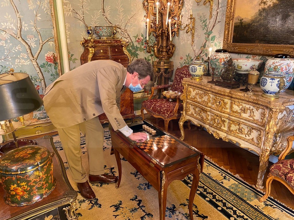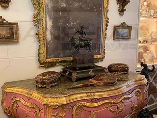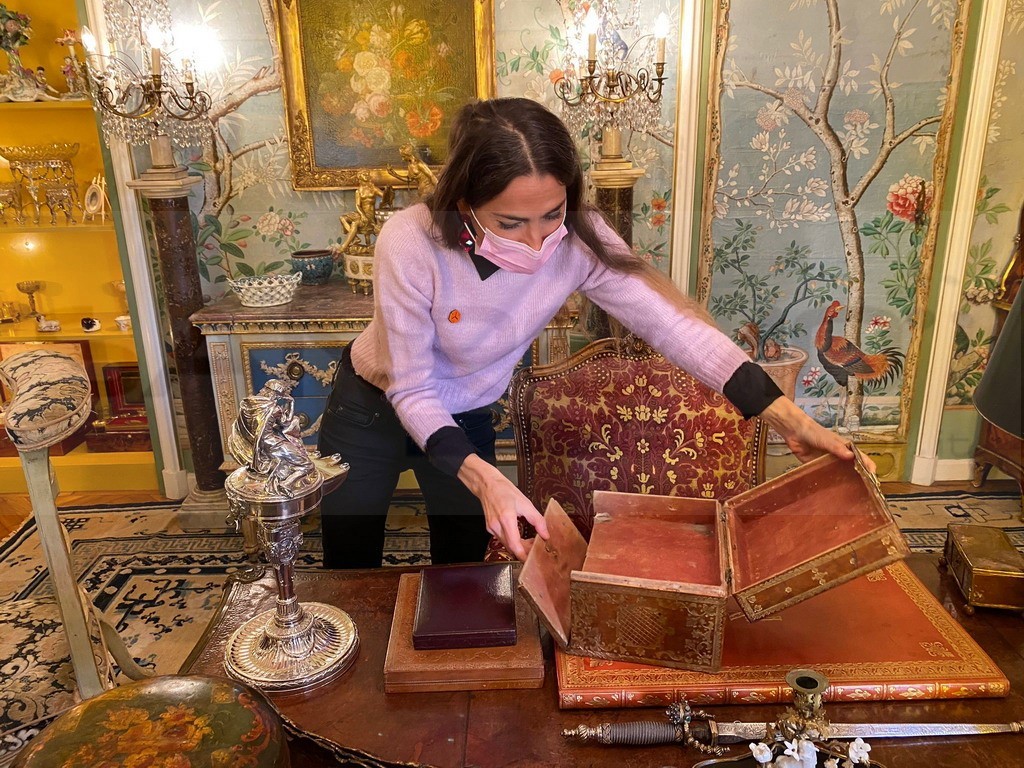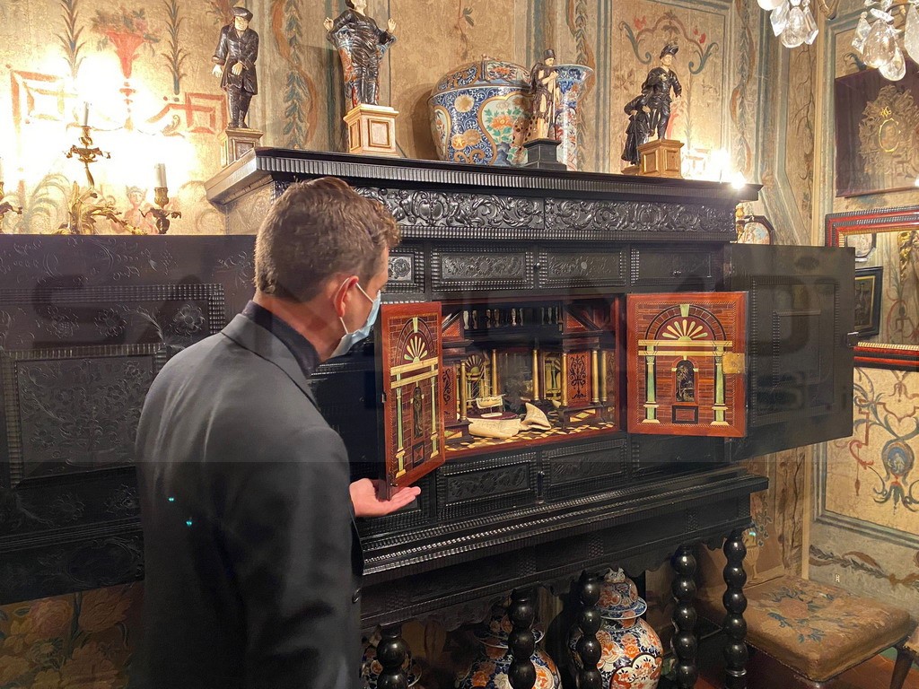A Villa San Luca, poi, basta aprire gli sportelli di un mobile per imbattersi in oggetti curiosi e rari, come il raffinatissimo calamaio portatile della seconda metà del XVIII secolo, interamente snodabile e ancora dotato della sua custodia in marocchino tinto, proveniente dalla collezione Hamilton e presumibilmente dono del re di Napoli all’ambasciatore britannico Sir William Hamilton.