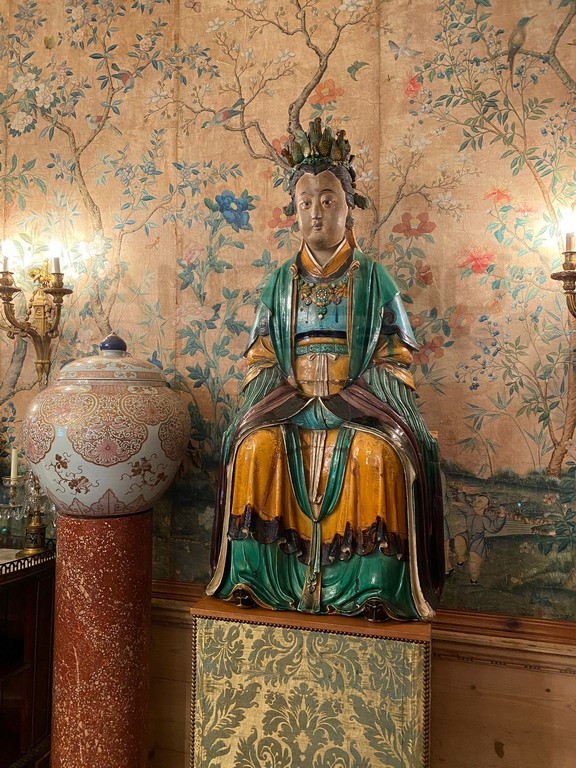 Un secondo nutrito nucleo della collezione, e una vera passione per Luigi Anton Laura, è rappresentato dalla porcellana cinese, la cui raccolta, tra le più importanti in Italia, conta esemplari di diverse epoche e tecniche: dai magnifici celadon di epoca Yuan e Ming fino alle splendide porcellane di epoca Qing (di ogni tipo e qualità, monocrome, “tre colori”, “famiglia verde”, bianco e blu), e in particolare due capolavori: una statua di Luohan in meditazione (destinata a un tempio buddhista) e una della divinità taoista Shengmu o “Santa Madra”, quasi a grandezza naturale, interamente eseguite in grès a invetriatura sancai o “tre colori” e risalenti alla tarda dinastia Ming (fine del XVI secolo).