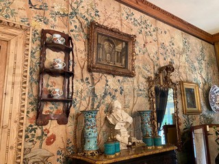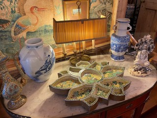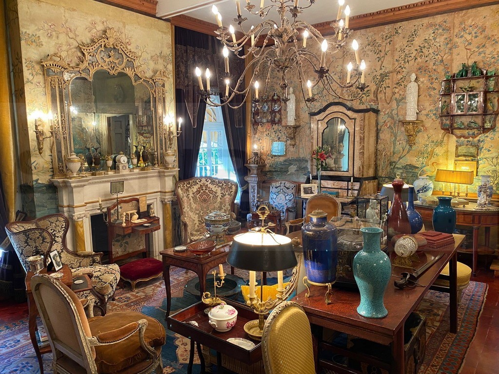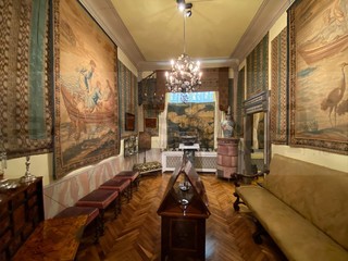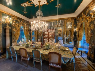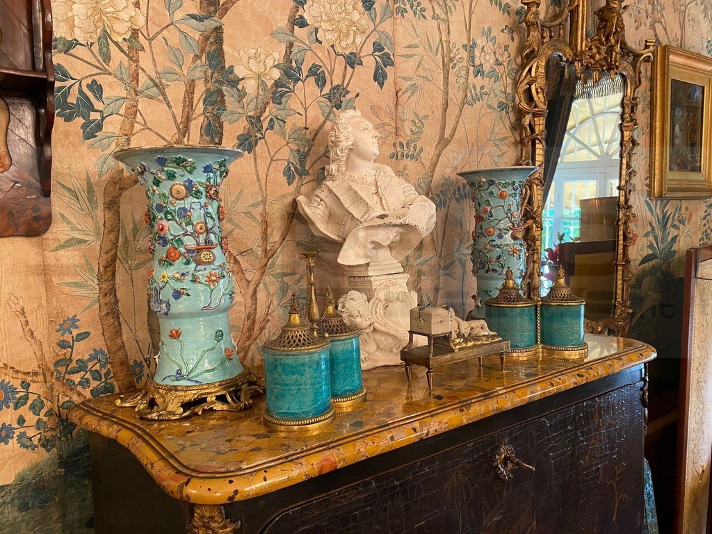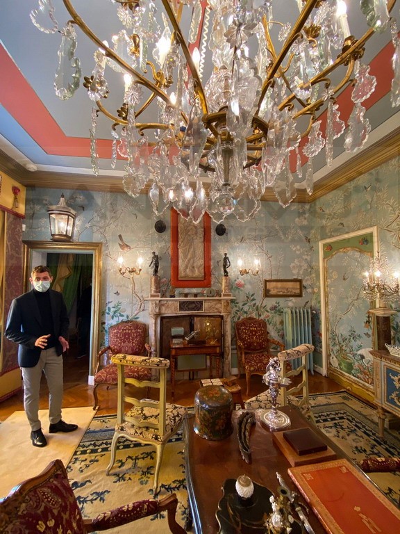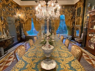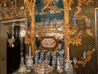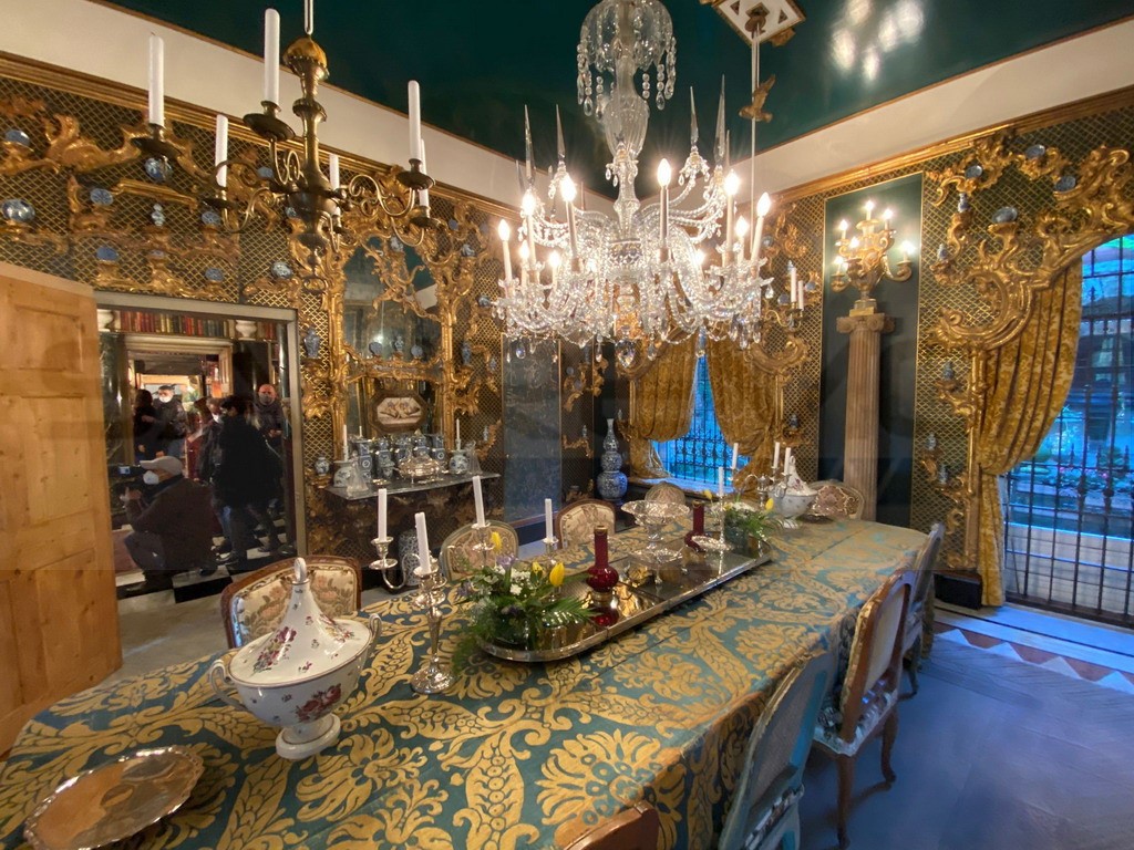 Curiosità e meraviglia suscitano gli allestimenti di alcune sale, progettati con creatività, sapienza e raffinato gusto da arredatore d’interno dallo stesso Luigi Anton Laura: nella sfavillante Sala da pranzo, ad esempio, le pareti sono decorate con parti di una splendida boiserie napoletana pienamente rococò, sulle cui mensoline poggiano piccole porcellane cinesi recuperate da un cargo mercantile cinese affondato verso il 1690 lungo le coste del Vietnam, oggetti sicuramente destinati al mercato olandese; e agli angoli della stessa sala, due monumentali vasi a “zucca” provenienti dalla più grande collezione di porcellane cinesi d’Europa, allestita a Dresda agli inizi del Settecento dal re Augusto II di Polonia.