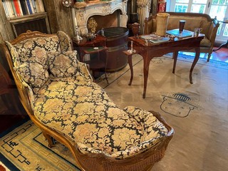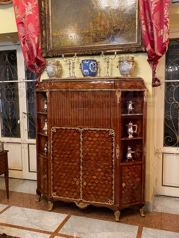 Tra i nuclei principali della collezione vi è di certo la raccolta consistente di mobili antichi, francesi, italiani e inglesi del XVIII secolo, di cui Luigi Anton Laura era esperto conoscitore. Predominano i mobili francesi, tutti stampigliati dai più grandi ebanisti attivi sotto il regno di Luigi XV e Luigi XVI, tra cui uno straordinario cabinet interamente lastricato in ebano, uscito da un atelier parigino verso la metà del Seicento, o un importante cassettone attribuito a Mathieu Criaerd della metà del Settecento, in tutto identico a quello conservato nella camera del delfino nel castello di Versailles, o ancora un rarissimo wine table con scomparto centrale girevole, realizzato in ebano e risalente al 1800 circa, conservato nella Sala del biliardo. Impressionante anche la raccolta di mobili italiani settecenteschi, principalmente genovesi e veneziani, spesso dipinti con sgargianti motivi floreali, o decorati, nel caso dei mobili veneziani, in “lacca povera”, con stampe ritagliate e dipinte. Non di legno, ma interamente in maiolica è il mobile più importante custodito a Villa San Luca: un rarissimo cassettone eseguito a Savona verso il 1760-70, forse proveniente da Villa Della Rovere, poi Gavotti, ad Albisola, vero e proprio pezzo di bravura di cui si ignora l’originale funzione.