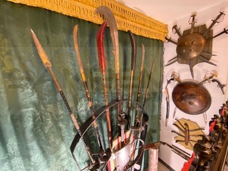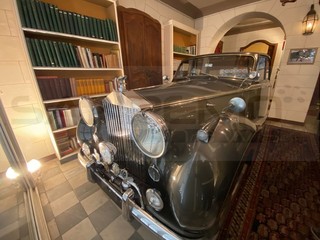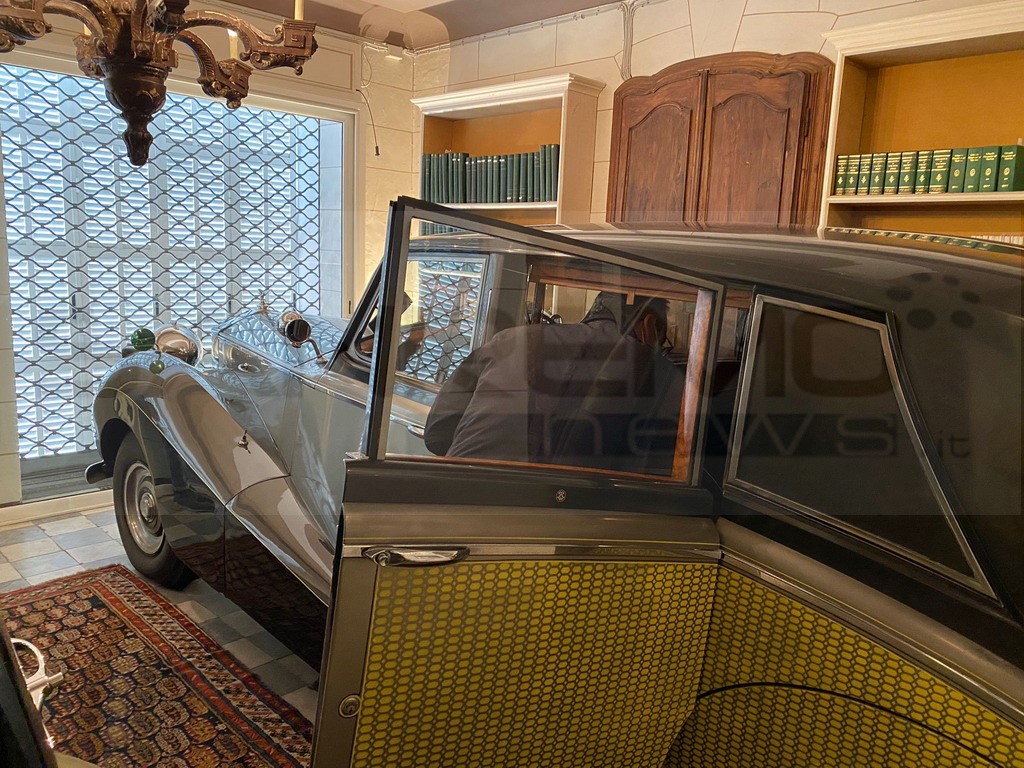 Evidentemente fuori dalla collezione, ma curiosamente esposte in un salone al piano terra con tanto di lampadari e tappeti, sorprendono infine due automobili perfettamente conservate, anch’esse veri e propri pezzi d’antiquariato, tra cui la Rolls Royce Silver Wraith degli anni ’50 su cui Luigi Anton e Nera Laura tanto spesso viaggiarono alla volta delle capitali europee, ma sempre tornando qui, a Villa San Luca a Ospedaletti: la loro casa.