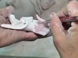 Li troviamo nel laboratorio impegnati tra legni di castagno da intrecciare e ceramiche da colorare.