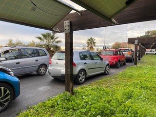 Questa mattina le code erano particolarmente lunghe e ci si augura che, nelle prossime ore possano rimanere all’interno di via al Mare, senza andare a intasare anche la sovrastante statale Aurelia.