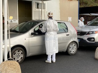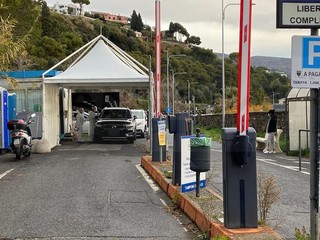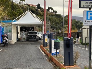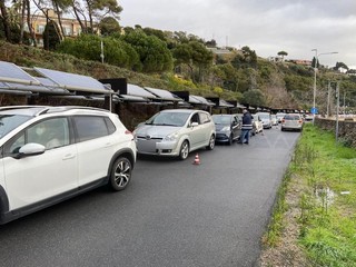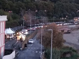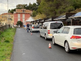 Pronti via è ovviamente subito il pienone per il nuovo ‘drive through’ per fare i tamponi, questa mattina nel parcheggio di via al Mare a Bussana di Sanremo.