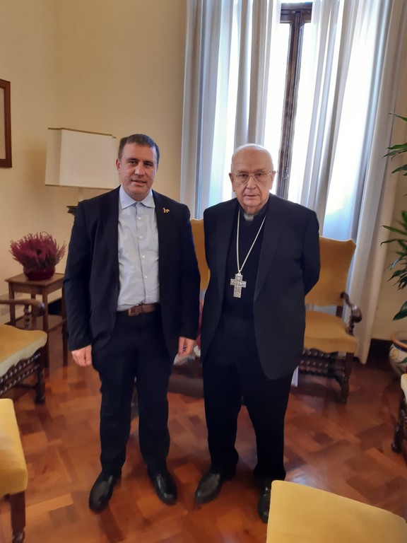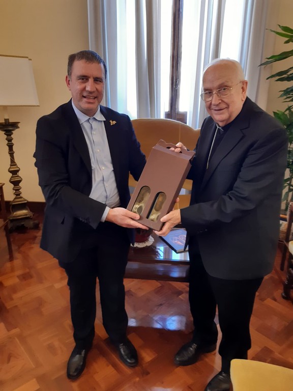 Il diacono Alex Dellerba nel corso dell'incontro presso il palazzo del Governatorato dello Stato Vaticano, ha consegnato alcune eccellenze alimentari tipiche di Aurigo, prodotte dalle piccole aziende a conduzione familiare che si trovano nel piccolo ma vitale centro della vaalle Impero.