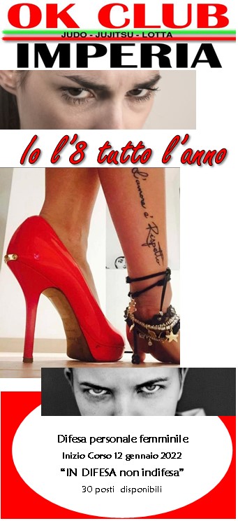 Il corso organizzato dall’OK CLUB si articola su 10 lezioni, la prima lezione teorica con la partecipazione della Dottoressa Noemi Angeli Psicologa del Centro Antiviolenza e l’Avvocato Giuseppe Fossati, si terrà presso l’Istituto Ruffini di Imperia, le altre lezioni pratiche presso la sede dell’associazione in via XXV Aprile 72 ad Imperia.