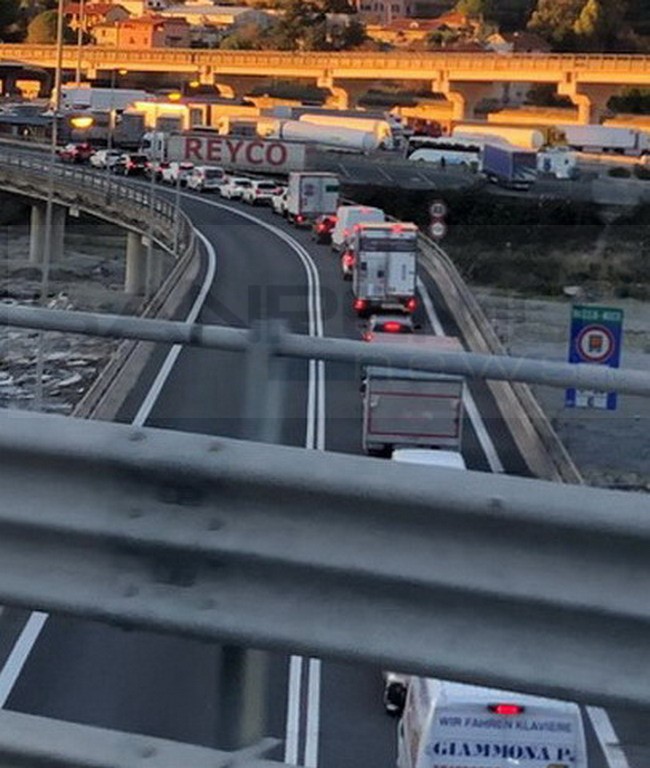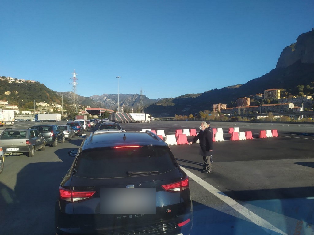 Ventimiglia: caos tamponi all'autoporto, mezzi imbottigliati per entrare in A10 e oltre un'ora di coda (Foto)