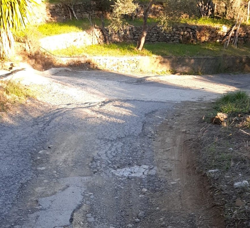Buche e voragini sulla strada per Panegai a Imperia. Stefano Sciandra: “Perfino con una mountain bike è difficile percorrerla” (foto)