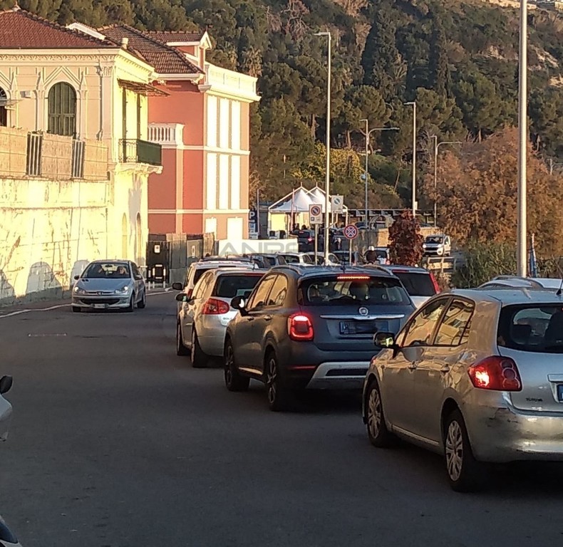 Sanremo: tamponi 'drive' a Bussana, la settimana inizia con una coda infinita in via Al Mare (Foto)