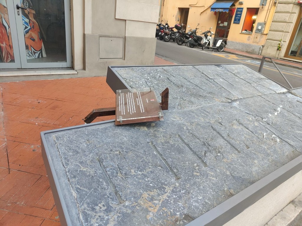 Imperia, vandali ancora in azione a Oneglia: danneggiata la targa esplicativa della 'Civitas Fidelissima' (foto)
