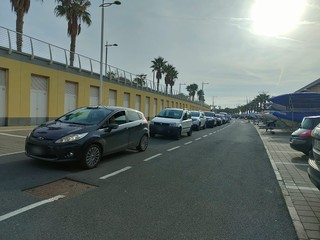 Fila chilometrica di auto stamani al 'drive through' sul molo Pastorelli a Imperia per l'effettuazione dei tamponi. In poche ore l'area è stata 'invasa' dai mezzi e i cittadini sono sempre di più esasperati.