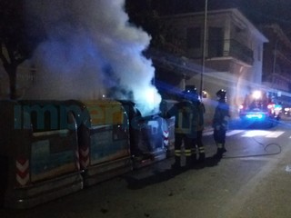 Diano Marina: a fuoco alcuni cassonetti della differenziata, intervento dei Vigili del Fuoco (Foto)