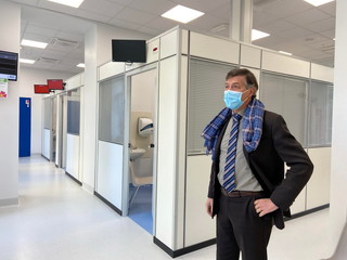 Visita del Direttore Generale di Asl 1 Silvio Falco, questa mattina a Camporosso e Bordighera, per portare la propria solidarietà agli operatori sanitari e volontari, impegnati nella campagna vaccinale.