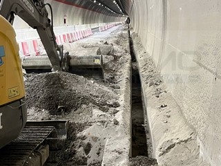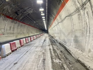 Attualmente consistono, con l’utilizzo di una ‘catenaria’, la posa di tubazioni di raccolta dei liquidi infiammabili e viene predisposto il piano di posa dei nuovi ‘new jersey’ e delle caditoie. L’avanzamento dei lavori sta interessando metà galleria, il tutto nell’ottica di poter consentire il prima possibile l’apertura a doppio senso di marcia del tratto interessato.