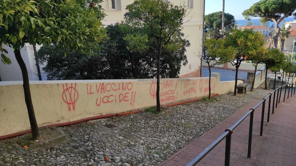 Bordighera: nuove scritte 'no vax' vicino al Comune, Ingenito “Indagini in corso per individuare i responsabili”