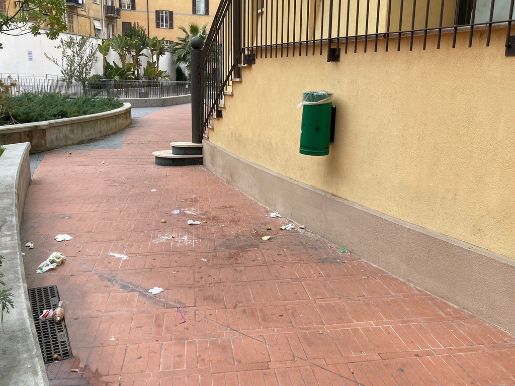 Nel fine settimana i giardinetti che insistono nel grande complesso residenziale 'Sasso', nel cuore di Oneglia, viene presa d'assalto da gruppi di giovani che lasciano rifiuti di ogni genere, nonostante ci siano tanti cestini in zona