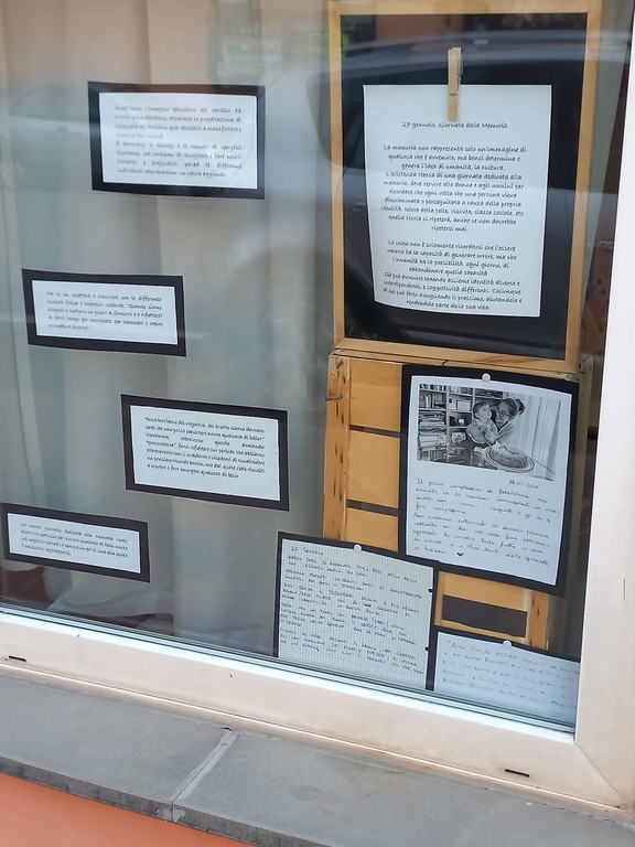 Ancora un gran bel lavoro da parte delle educatrici del nido d'infanzia Abbracciaperte di San Bartolomeo al Mare. In occasione della Giornata della Memoria, ogni famiglia ha portato al Nido un pensiero scritto accompagnato da uno o più oggetti rappresentanti la loro memoria. Le educatrici hanno parlato con i bambini e le bambine durante l’assemblea del mattino e con loro hanno realizzato l'allestimento delle vetrate.