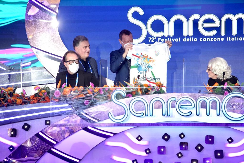 La maglia è stata consegnata ad Amadeus in Sala Stampa dall’assessore Faraldi.“E’ stato un bel momento – racconta Faraldi – perché Amadeus ha accolto con molto piacere la maglia realizzata proprio in occasione di questo Festival e ha ringraziato per la dedica così speciale”.