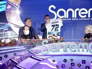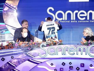 Il Festival di Sanremo si tinge di biancazzurro. Questa mattina Amadeus ha ricevuto in sala stampa una maglia speciale della Sanremese, donata dall’assessore allo Sport, Giuseppe Faraldi.