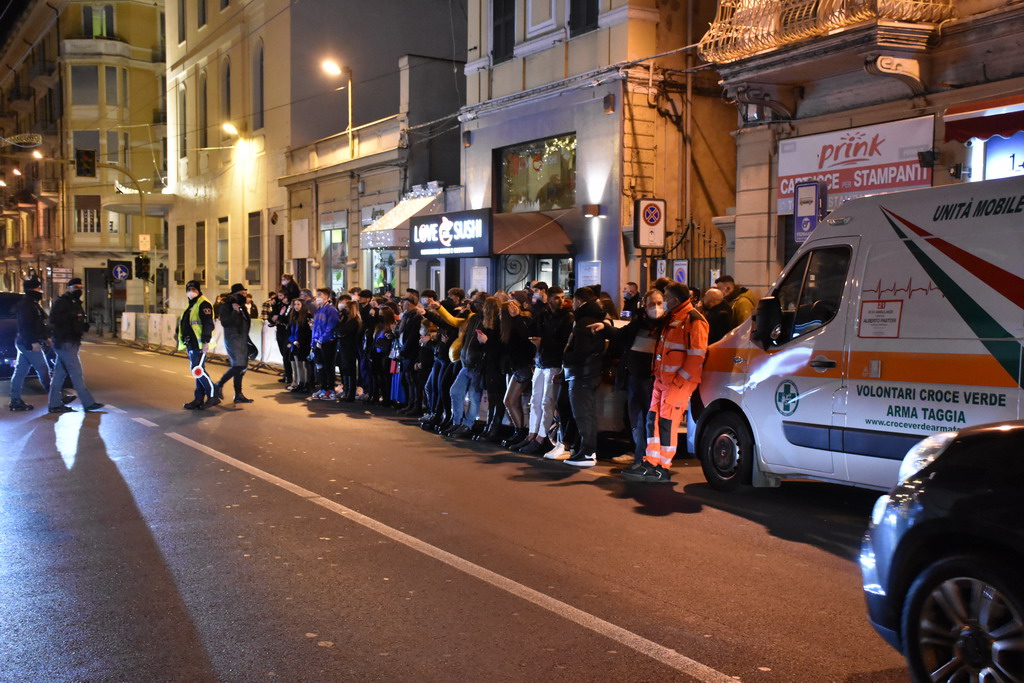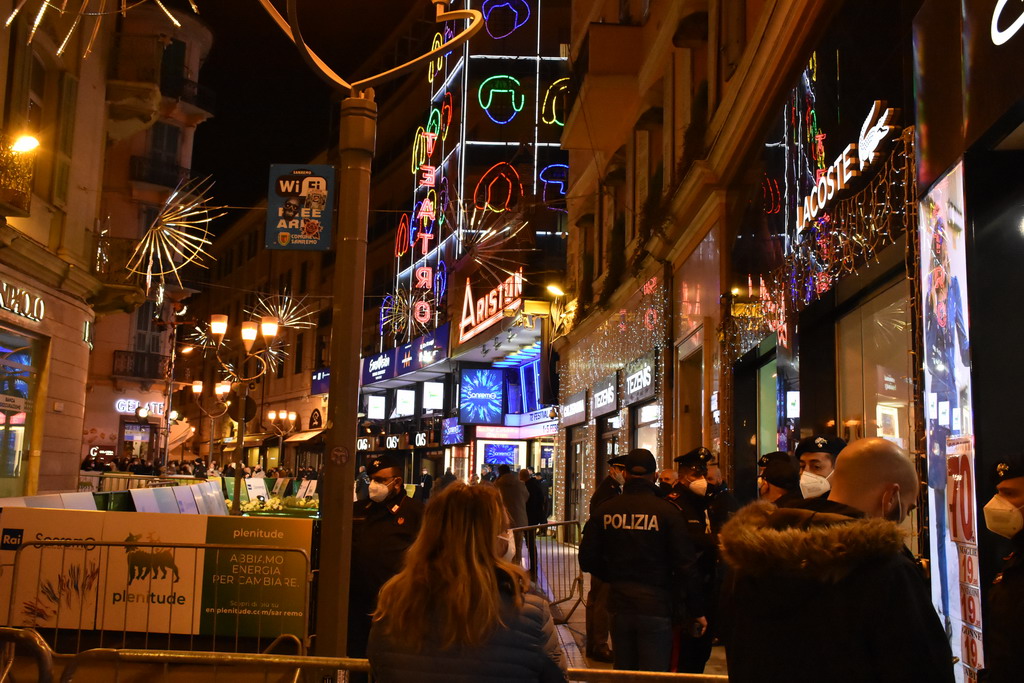 Ebbene, ieri sera venivano indossate regolarmente solo attorno all’ingresso principale dell’Ariston in via Matteotti e all’ingresso posteriore, dove erano presenti le forze dell’ordine. Nei luoghi della ‘movida’, invece, una percentuale minima di persone che indossavano la mascherina e nessun controllo nel momento clou, ovvero tra le 23 e l’una.