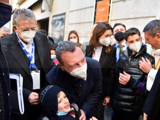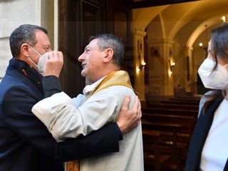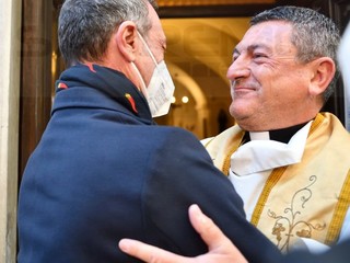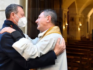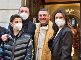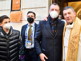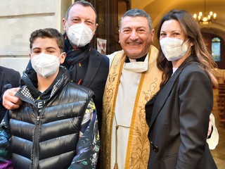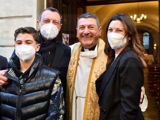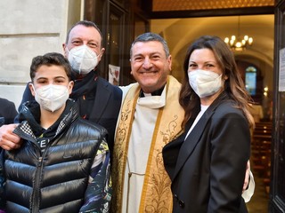 E’ andato alla Chiesa della Marina per seguire la Messa officiata da don Fabrizio, insieme alla moglie Giovanna e al figlio. All’uscita, dopo che nella piazzetta della ‘movida’ è girata la voce che Amadeus era in chiesa, si è creato un capannello di fan.