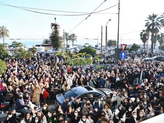 La grande festa di Mahmood e Blanco ieri all'Hotel de Paris di Sanremo dopo la vittoria al 72° Festival. Il duo di cantanti arrivato all'albergo si è lasciato andare ai festeggiamenti per l'importante risultato raggiunto. Il tutto davanti a una folla di fan e fotografi accorsi per partecipare al momento di festa. Blanco in particolare si lasciato andare a un abbraccio liberatorio con i genitori e a un bacio con la sua compagna, poi ha sollevato il trofeo davanti ai fan in segno di vittoria. Mahmood nel frattempo non si è risparmiato mostrandosi da uno dei terrazzini dell'albergo davanti ai tantissimi sostenitori in visibilio.