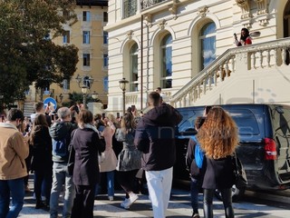 Questa mattina davanti all'hotel De Paris di Sanremo, folla in delirio per Mahmood. Il cantante vincitore del 72° Festival, insieme a Blanco, con la canzone Brividi, non si è risparmiato per i fan che l'aspettavano e ha concesso sorrisi e attenzione a tutti. Già nei giorni scorsi il duo insieme a Michelangelo si è esibito dall'albergo intonando proprio il brano che ieri li ha fatti entrare nella storia della kermesse canora.