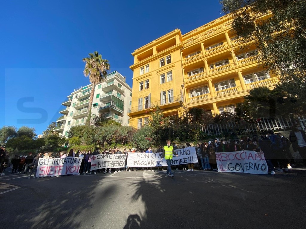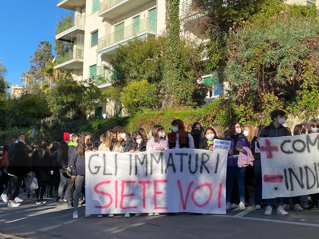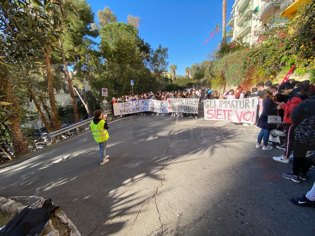 Oltre un centinaio di studenti del Liceo Cassini e di altra scuole di Sanremo e di altri istituti superiori della zona hanno dato vita ad una manifestazione di protesta. Il gruppo si è riunito sotto il Liceo matuziano con cori, slogan, striscioni e anche qualche fumogeno.