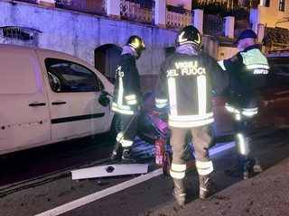 Incidente in serata sulla strada del capo Berta, lato Imperia. Per cause da accertare un furgone è andato a urtare un'auto per poi schiantarsi frontalmente contro una seconda vettura.