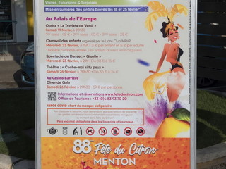 La Fête du Citron, che ogni anno attira più di 200.000 visitatori, durerà sino al 27 febbraio con sfilate di frutti dorati sia di giorno che di notte, oltre al Salone dell'Artigianato, al Festival delle Orchidee e molte altre iniziative