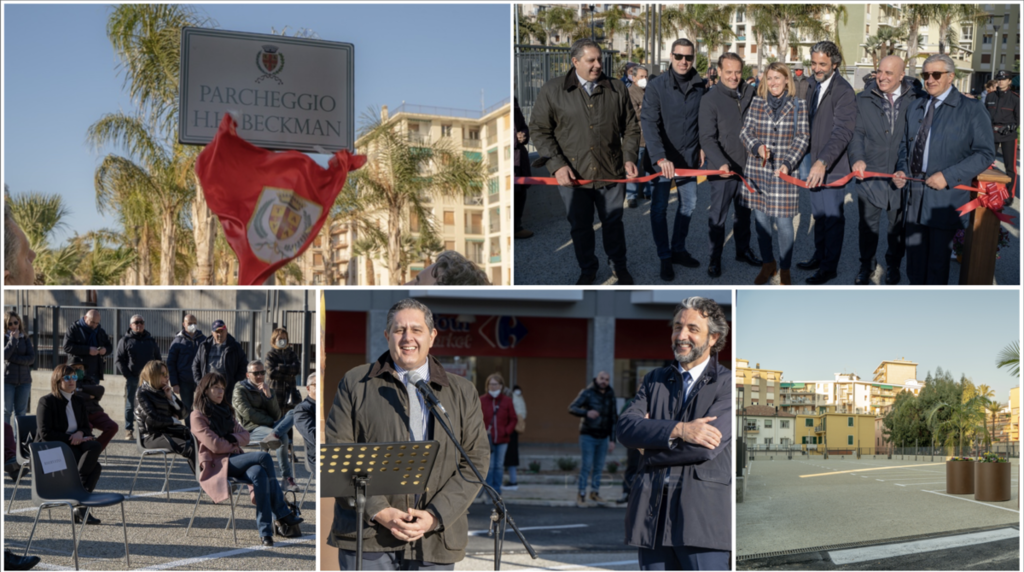 “Oggi inauguriamo e intitoliamo un parcheggio completamente gratuito – aggiunge il sindaco di Arma di Taggia Mario Conio - che offre alla cittadinanza e ai turisti 96 posti auto al piano inferiore e 54 al piano superiore situato all’altezza del Viale delle Palme. Quattro posti auto sono invece riservati a persone disabili. L’opera oltre ad offrire un servizio al pubblico ha consentito un’importante riqualificazione dell’area. Grazie al generoso gesto del Sig. Beckman Henry Herman il Comune di Taggia ha potuto realizzare l’attuale viabilità e destinare a parco urbano (oggi dotato di una nuova infrastruttura destinata a parcheggio pubblico) una consistente porzione di territorio urbano. L’Amministrazione comunale ha ritenuto pertanto che l’intitolazione della nuova area destinata a parcheggio pubblico posta a lato del “Viale delle Palme” costituisca il giusto e doveroso riconoscimento dei meriti acquisiti dal Sig. Beckman. Ringrazio Regione Liguria per l’importante finanziamento di 470mila euro ai sensi del fondo strategico regionale 2019, che ha consentito la realizzazione di un nuovo parcheggio”.