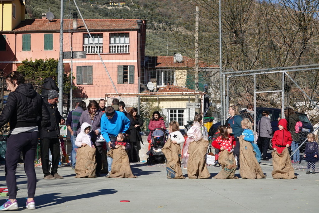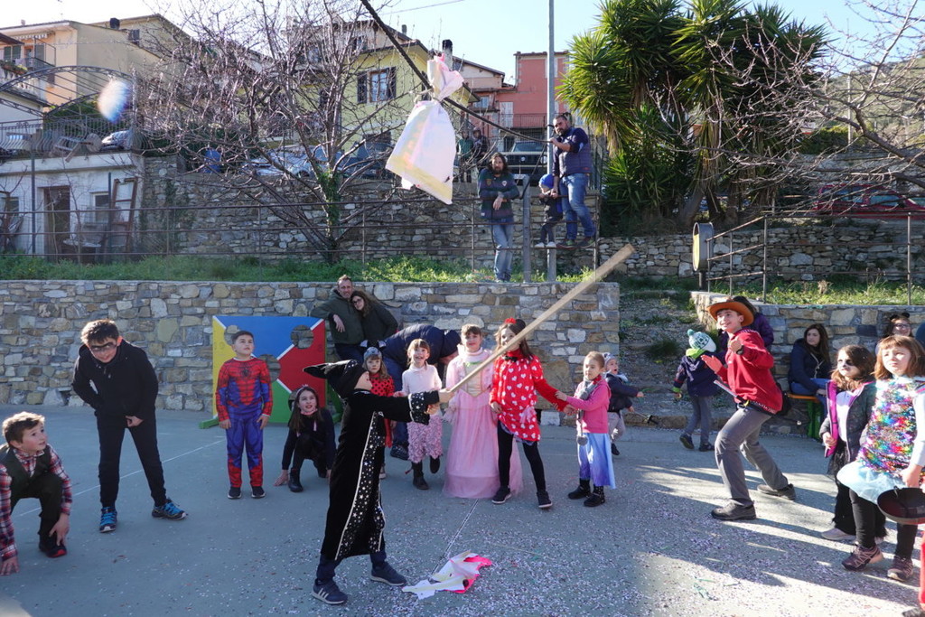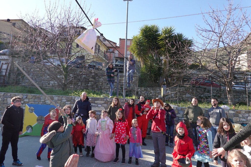 “Correva l’anno 2020, era febbraio, le notizie di un contagio giunto da lontano erano ancora frammentarie - proseguono - si fece Carnevale, non senza qualche timore. Il tempo era piovigginoso, preludio a ben altra pioggia. Appena in tempo e poi l’Italia sarebbe piombata nel silenzio e nella chiusura. I bambini hanno subito a modo loro un periodo angosciante, che di fatto non è ancora terminato, ma forse hanno saputo affrontare finora con il loro spirito di adattamento. Il gioco è finalmente tornato in paese. Il pomeriggio di sabato, nel campetto attiguo al gioco di bocce, è andato in scena un evento che ha soddisfatto grandi e piccini. O meglio, bambini di ogni età. Con l’organizzazione della Pro Loco di Villa Viani, lo spazio sportivo è stato occupato da giochi da tavolo divenuti da campo in forma extralarge, sono arrivati almeno cinquanta tra bambini e ragazzini. In un angolo, ben distanziato, lavora la macchina dello zucchero filato e a turno i bambini e non solo si mettono in coda per il prelibato boccone. Il favore degli spazi ha garantito il distanziamento e i giochi spettacolari lo hanno di fatto accentuato: se si parla di corsa nei sacchi…tutti saltano nei loro spazi, qualcuno vince, qualcuno cade…più manches e grandi risate. Immancabile la pentolaccia. Ben quattro sacchi presi a bastonate da bambini mascherati di varia età. In luoghi come Villa Viani si guarda sempre con interesse alle performances dei più giovani. Perché sarà vero che le olive le si devono ancora rivedere sugli alberi. Sarà vero che adesso ci sono gli agevolatori meccanici per far cadere le olive sulle reti. È però altrettanto vero che saper dare colpi di “trappa” sugli alberi è cosa da non dimenticare. Dunque, bastonate per i sacchi, esplosioni di coriandoli, caramelle, piccoli giochi, assalto a terra dei bambini e controllo attento del bottino con eventuali spartizioni con fratelli e cugini. Eventuali, siamo sempre in Liguria. Infine, grande tiro alla fune, sempre per mettere alla prova la forza di tutti. Chiusura con le immancabili bugie, preparate dalle abili mani cuciniere del paese, con tocco di meringa. Noblesse oblige. Dalle 14 alle 17, divertimento assicurato per tutti e bambini felici. Di questi tempi, è molto e meno male che le Comunità dell’entroterra, nonostante tutto, resistono e danno l’esempio”.
