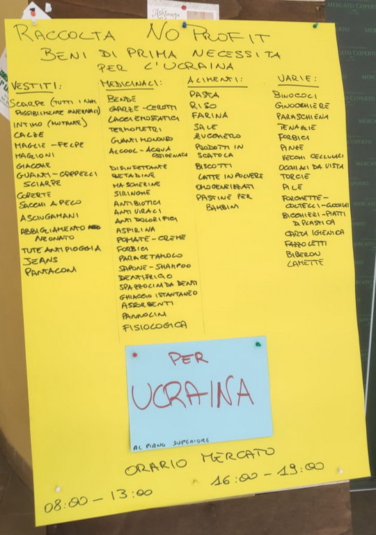 Tante le donazioni alla raccolta beni di prima necessità per l'Ucraina al Mercato Coperto di Bordighera