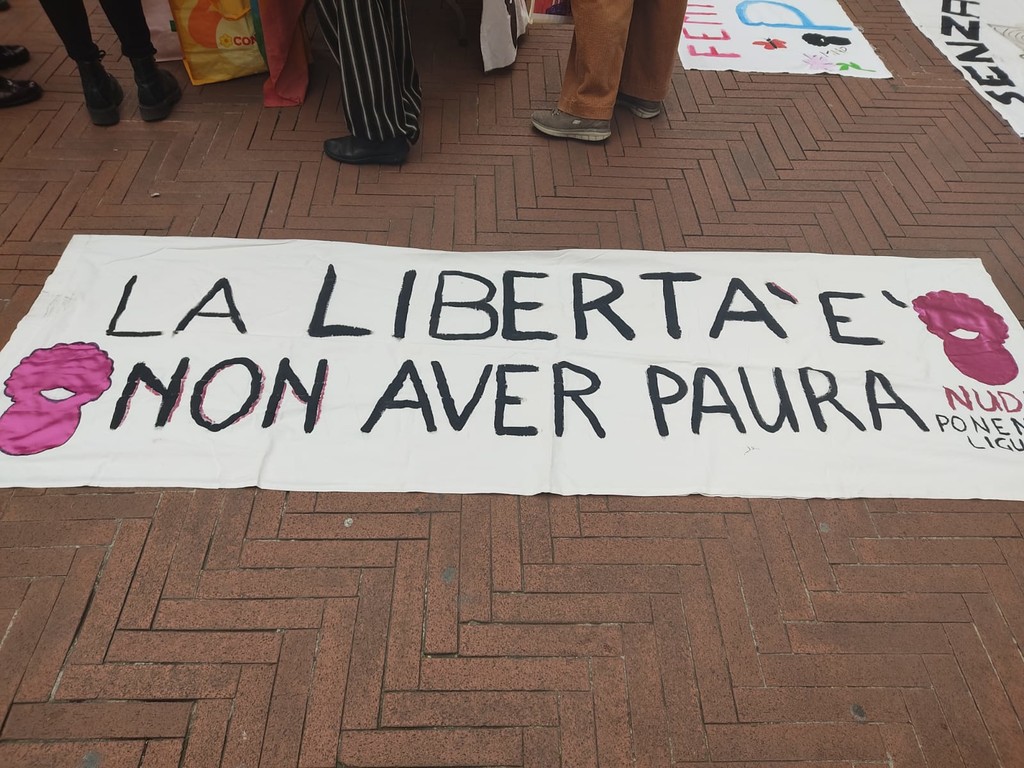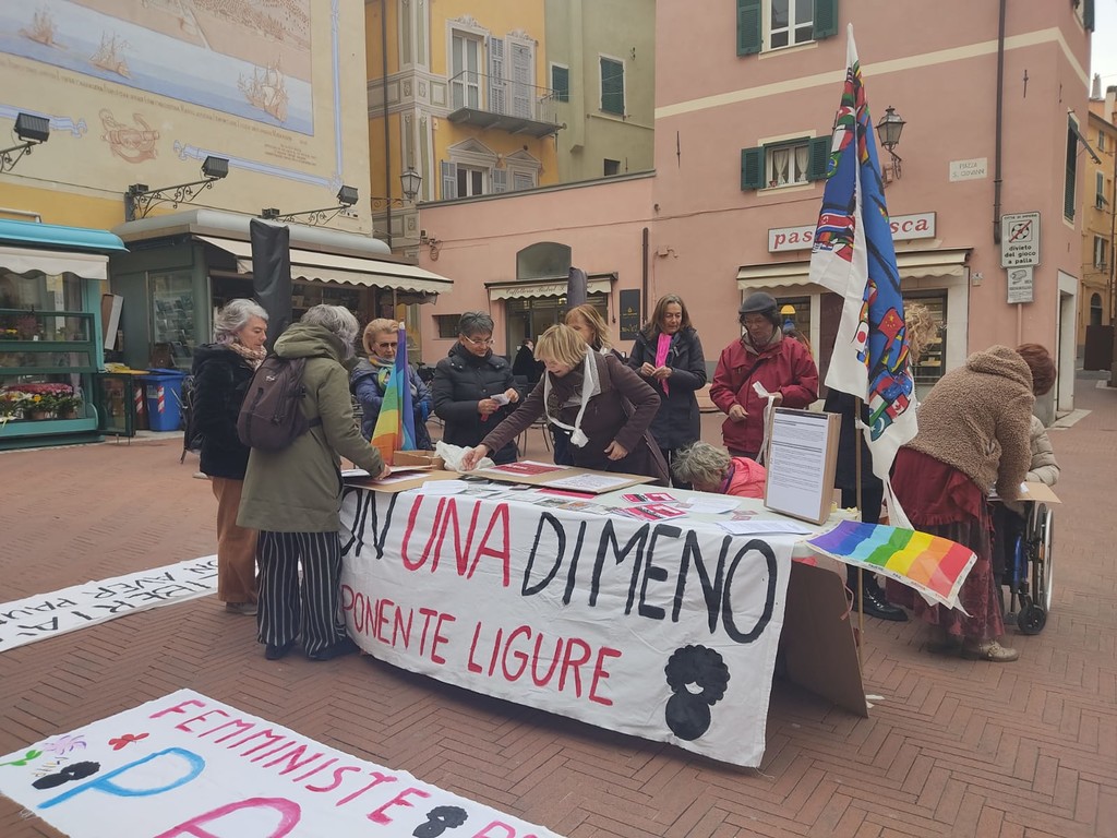 Sit -in del movimento 'Non una di Meno' in occasione dell'8 marzo, oggi pomeriggio, in piazza San Giovanni a Oneglia.