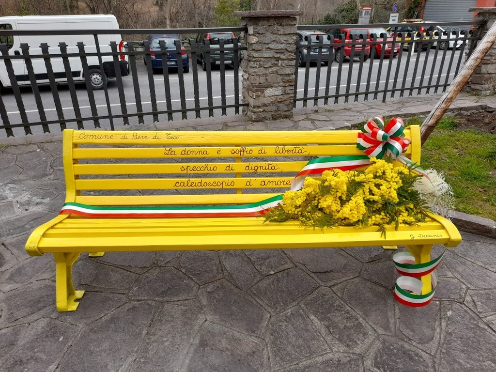 “La donna è soffio di libertà, specchio di dignità, caleidoscopio d’amore”: questa la frase che adesso si trova sulla panchina gialla installata, in piazza Brunengo, a Pieve di Teco. Ieri, in occasione della festa della donna, gli alunni dell’istituto comprensivo di Pieve di Teco e Pontedassio hanno partecipato ad una importante iniziativa di sensibilizzazione basata sui valori dell’otto marzo. Un’altra panchina infatti, è stata posizionata in via IV novembre (via delle scuole) a Pontedassio.