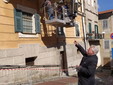 Recupero della balconata e altri lavori all'interno dell'edificio della Stazione dei Carabinieri, questa mattina, nel centro storico della città di confine.