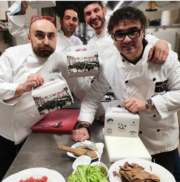 Oltre al ricco carrello del bollito con i classici tagli (testina, lingua, scaramella, punta di petto, muscolo, biancocostato e coda), servito con sette salse (bagnetto verde, bagnetto rosso, cognà, mostarda, composta di cipolle, rafano e senape), i fortunati commensali potranno degustare altre specialità tipiche di Liguria e Basso Piemonte: il pan fritto alle erbe aromatiche e lavanda; la panissa al cipollotto; la battuta di bue con sala, pepe e olio evo; i raviolini nel brodo del gran bollito e, per finire, la stroscia con cremoso di ricotta di pecora brigasca e olive taggiasche candite. Ad accompagnare le varie portate saranno il Langhe Ornati e il Barbera d’Alba di Tenute Rocca di Monforte d’Alba.