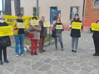 Sit in silenzioso, ma colorato di giallo "per orientare il faro sui diritti umani ricordando l'importanza per la dignità e l'integrità umana", questo pomeriggio a spianata Borgo Peri organizzato da Amnesty international in collaborazione con 'Genitori @ttivi' e 'Antenna'.