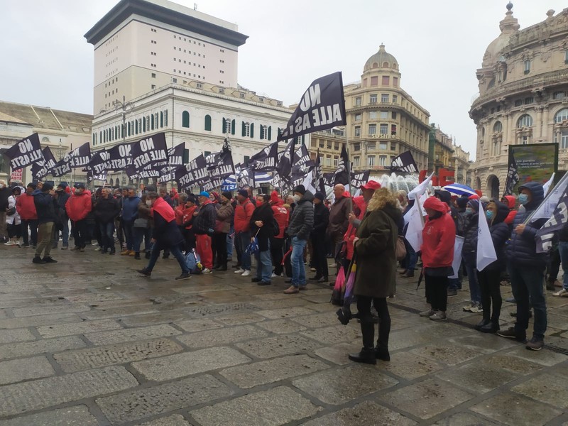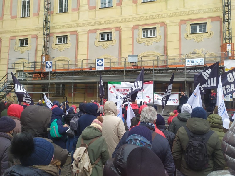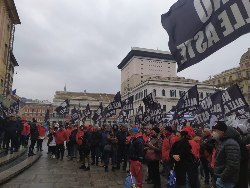 “No alle aste”, balneari in piazza questa mattina a Genova per protestare contro la proposta di legge del governo contenente l'emendamento che stabilisce il via alle gare dal 2024 per la concessione degli stabilimenti.