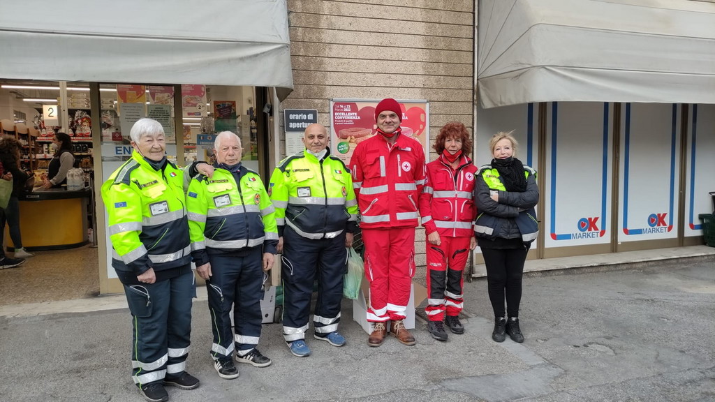 Anche al supermercato Ok Market in piazza Garibaldi, è possibile partecipare alla raccolta di beneficenza in favore degli ucraini presenti nel Comune fuggiti dalla guerra nel loro Paese. Sul posto gli uomini e le donne della Protezione Civile e