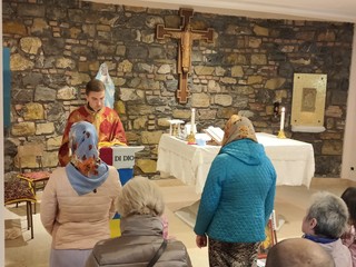 Prima Messa con rito orientale bizantino - ucraino stamattina nella cripta della parrocchia di Cristo Re a Imperia celebrata da padre Andriy Mahas.