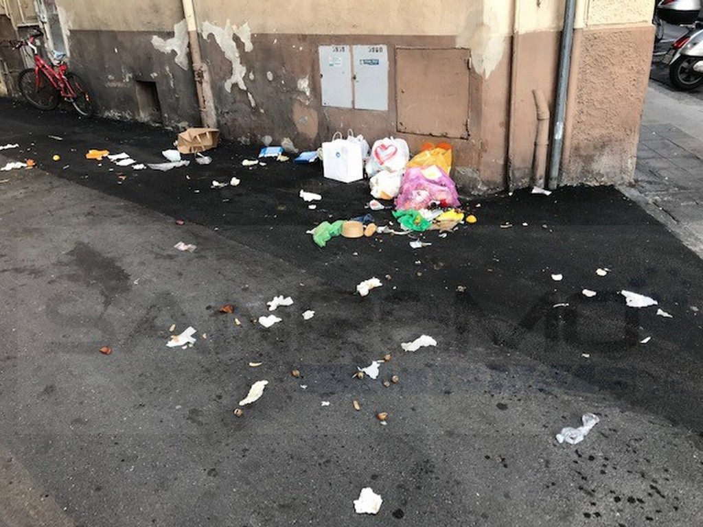 “Se non fossimo nel centro del centro di Sanremo si potrebbe pensare ad uno squallido angolo della città vecchia. Tuttavia la scena si ripete costantemente tutte le settimane, salvo che poi l'addetto arancione provvede ad una quotidiana pulizia”.