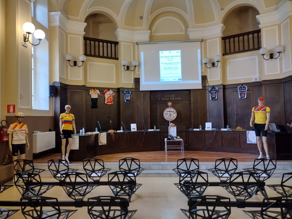 "Presente in sala anche l'ex ciclista Giuseppe Perletto che una volta terminata la carriera professionistica, ha vestito per qualche anno la maglia del Pedale Imperiese. Particolarmente apprezzata da tutti i partecipanti (incuriosendo soprattutto i più giovani) l'esposizione di tutte le divise sociali, dalla prima senza sponsor e rigorosamente in lana (quanto pesava in caso di pioggia!), fino all'ultima confezionata nel 2020, che nel tempo hanno vestito le centinaia di sportivi ed atleti (tutti rigorosamente riportati nel libro). A conclusione dell'incontro gli organizzatori hanno invitato il pubblico presente per un breve pensiero rivolto tutte le popolazioni che in questo particolare momento stanno soffrendo e stanno vivendo situazioni di grande criticità”.
