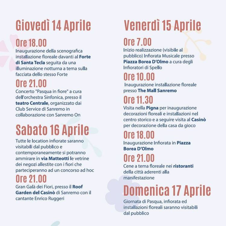 11.30. Pasqua in fiore 2022: visita nella Pigna per inaugurazione decorazioni floreali e installazioni nel centro storico + visita al Casinò per decorazione della casa da gioco (locandina)