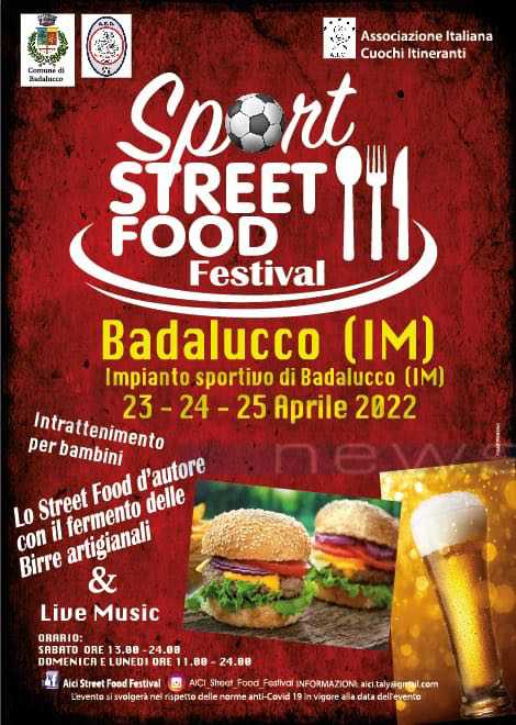 L'iniziativa "Sport Street Food Festival" che prenderà il via sabato a partire dalle 15, vede impegnate l'Associazione Italiana Cuochi Itineranti, in collaborazione con il Comune di Badalucco e l'ASD Badalucco. "Da sabato a lunedì ci saranno operatori selezionati e rappresentanti la qualità del territorio locale e delle diverse regioni italiane. - spiegano gli organizzatori - All’interno del “villaggio” si potranno gustare i classici del cibo da strada come la grigliata di carne, la patata twister e i dolci tipici di carnevale come dessert. Ma anche il meglio del cibo da strada italiano: gli hamburger di fassona, il thai food, le pannocchie alla brace, le olive ascolane e il fritto di mare! Il tutto preparato e cucinato al momento da “chef”, selezionati che parteciperanno con i loro caratteristici stand e con materie prime di comprovata provenienza. Il tutto annaffiato da birra artigianale italiana e belga".